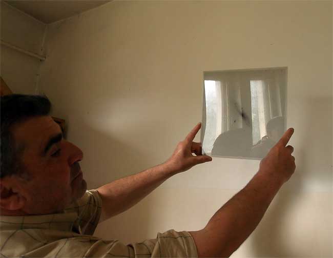 Shota Inasaridze zeigt eine Photoplatte (M31)