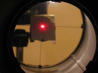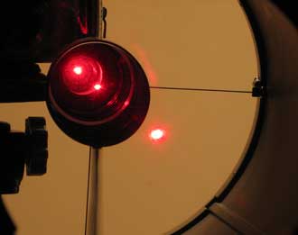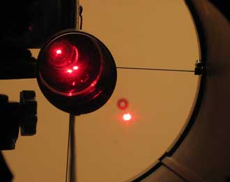 Setzt man vor dem Laser eine Barlow Linse ein, so wird der Laserstrahl flächig und man kann die Reflektion der