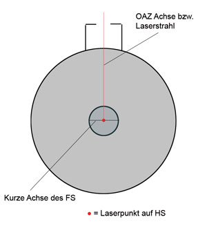 aufkleben), die genau dort ist, wo die optische Achse des OAZ auftreffen müsste. Die Vermessung des Punktes ist allerdings