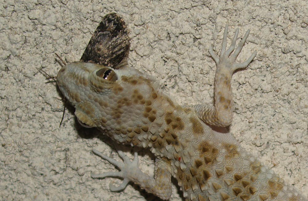 Auf meiner Georgienreise - der Gecko verharrte mit Beute reglos an der Wand.