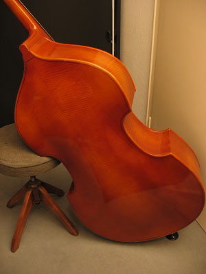 Der hier abgebildete Kontrabass ist ein Mittenwald Kontrabass aus dem Karwendel anno 1986, aus Serienfertigung. Er hat eine Decke aus Fichte, Zargen und Boden sind aus Sperrholz.