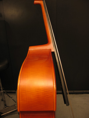 Von der Seite gesehen wirkt der Kontrabass eher "flach". Die Holzseiten mit denen Decke und Boden verleimt sind nennt man Zargen.