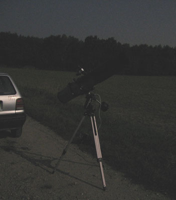 Dann habe ich erstmal ein paar Aufnahmen von dem Teleskop am Beobachtungsort gemacht, zuerst mit Blitz, dann mit