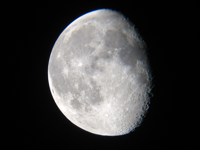 Gar nicht mal so schlecht für die Verhältnisse. Ich probierte auch noch weitere Mondfotos. Bei 30-facher Vergrößerung,
