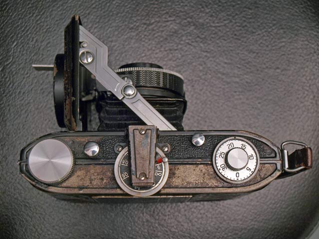 Ich hatte zuerst überlegt, ob ich eine neue Belederung anbringe. Doch sieht die Kamera so schön rustikal aus und ich lasse sie so.