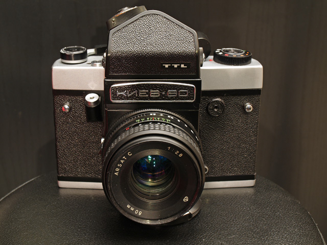 Die Kiev 60 ist eine Weiterentwicklung der Kiev 6 und Kiev 6C, die der deutschen Pentacon Six entlehnt waren.