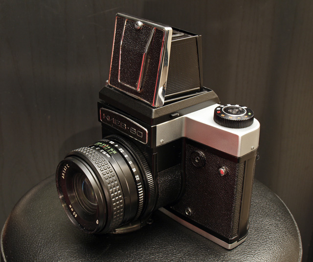 Kiev 60 mit aufgeplapptem Lichtschachtsucher