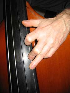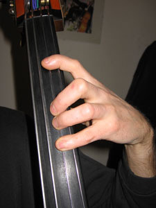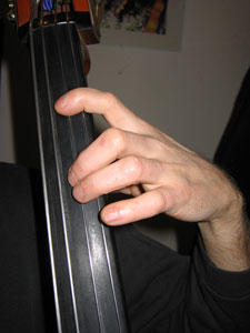 Beim Kontrabass ist die Grifftechnik durch die Größe des Instrumentes und auch durch die dicke der Saiten eingeschränkt.