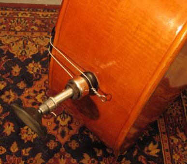 Hier ist an den Stachel übrigens ein Gummiteller angeschraubt, damit der Bass auf glattem Boden nicht wegrutscht.