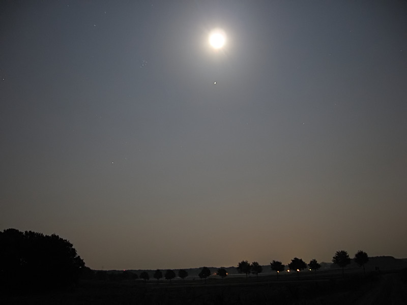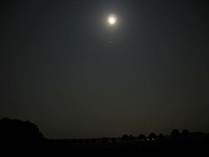 Die Aufnahme entspricht etwa den realen Lichtverhältnissen. Der Mond