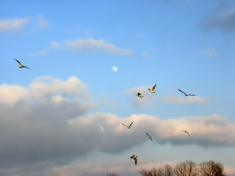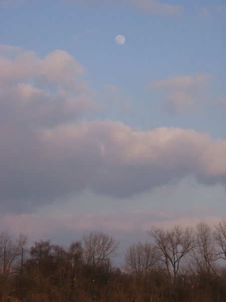 Bei einem Abendspaziergang bei frostigen Temperaturen zeigte sich der Mond malerisch in der Abenddämmerung.